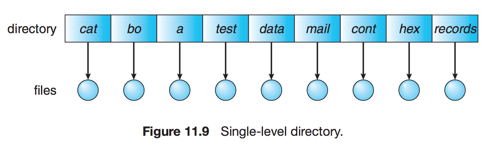 - 가장 간단한 구조로 모든 파일이 하나의 디렉터리 내에 위치한다.
