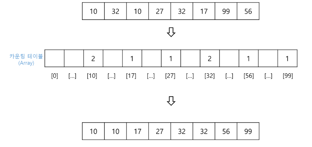 - 숫자끼리 비교하지 않고 카운트를 세서 정렬하는 방식