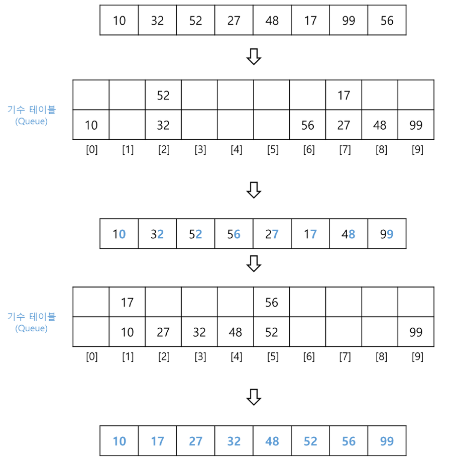 - 시간 복잡도 : O(dn) → d: 최대 자릿수