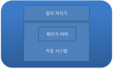 데이터베이스 시스템은 보통 비휘발성 저장 장치인 디스크에 데이터를 저장하며 전체 데이터베이스의 일부분을 메인 메모리에 유지한다. DBMS는 데이터를 고정 길이의 페이지로 저장하며, 디스크에서 읽거나 쓸 때에 페이지 단위로 입출력이 이루어진다. 이때 페이지 버퍼 모듈이 사용하여 메인 메모리에 유지하는 페이지를 관리한다.