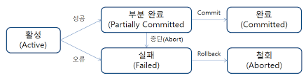 - 철회(Aborted): 트랜잭션에 실패하거나 롤백되어 이전 상태로 복구된 상태. 이 단계에서는 트랜잭션의 작업 결과가 데이터베이스에 영향을 미치지 않는다.