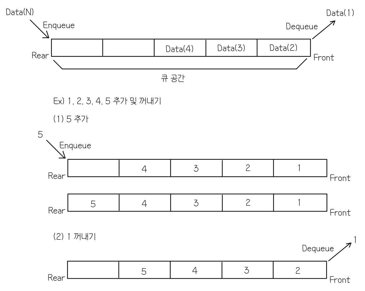 - 선입선출 (First In First Out; FIFO) 자료구조