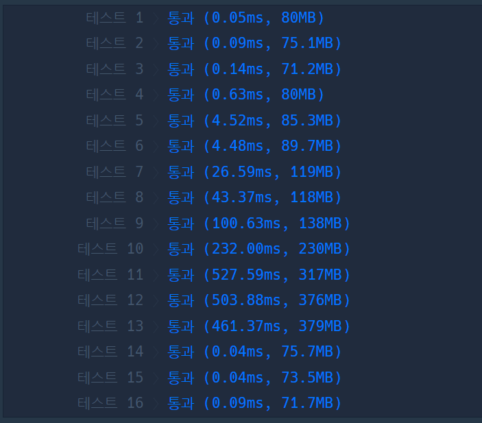 - 결과 반환: players 배열을 그대로 반환하여 경주가 끝났을 때의 선수들의 이름을 1등부터 등수 순서대로 배열에 담아 반환