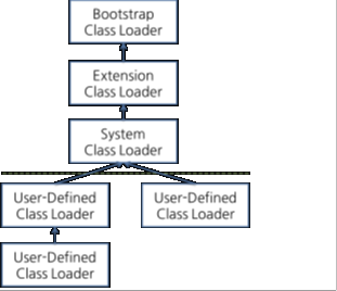 클래스 로더들은 부모-자식 관계를 혈성하여 계층 구조를 형성한다. 이 계층 구조는 다음과 같이 구성된다.