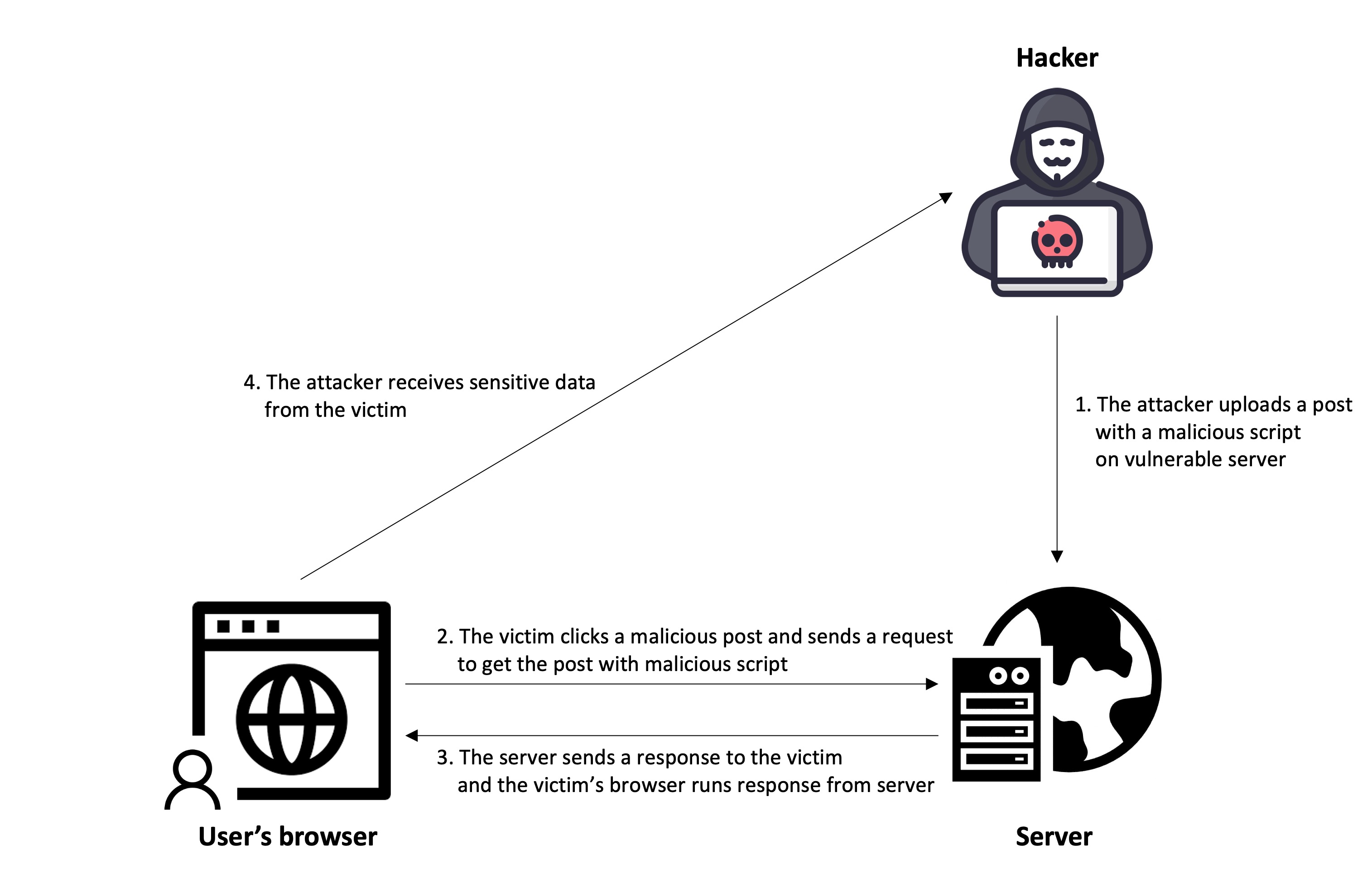 - 사용자의 확인 : 이 게시물을 사용자가 확인한다. 이때, 사용자는 악의적인 스크립트가 포함된 게시물을 열람하게 된다.